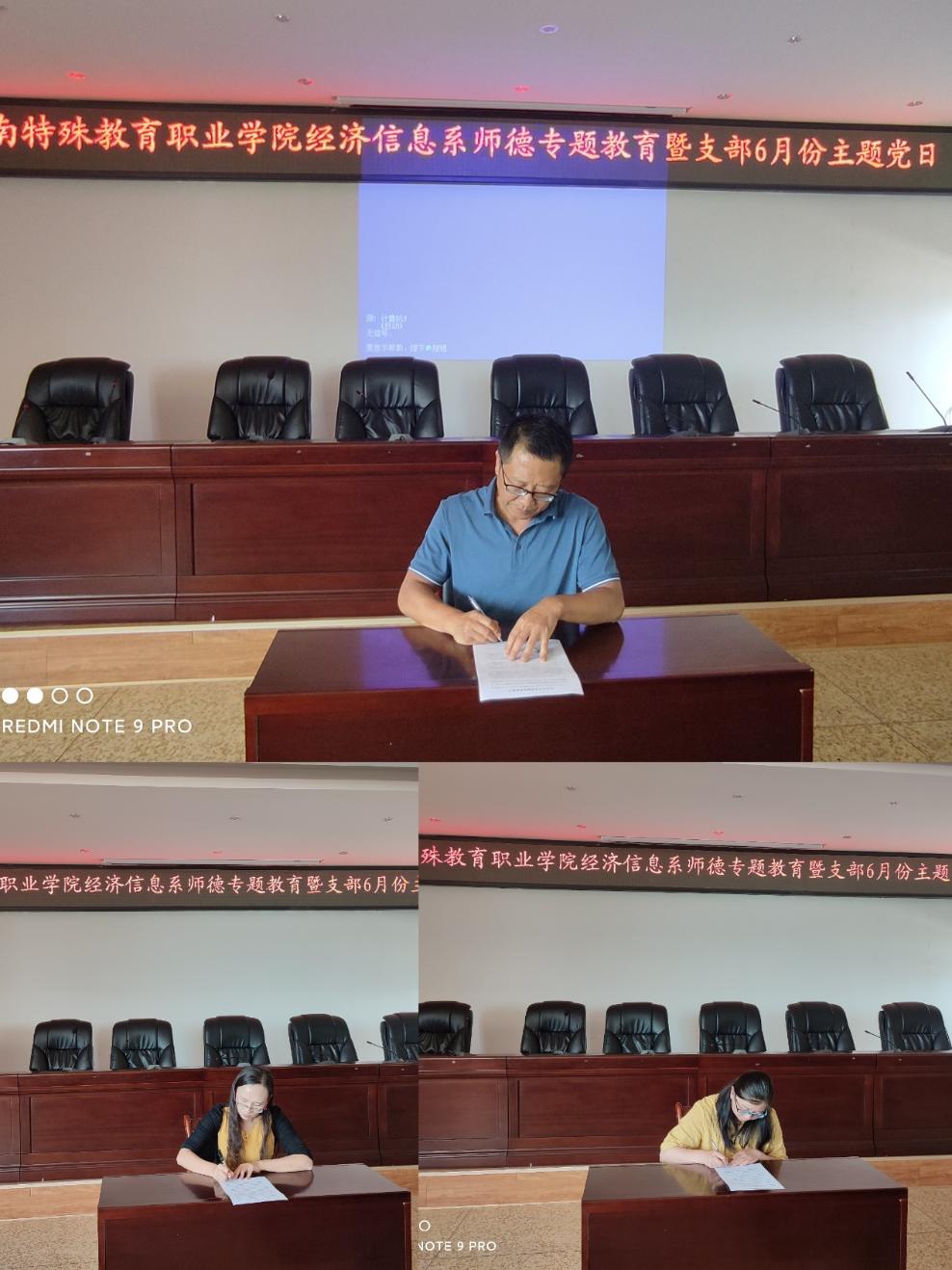 图为教师代表签署《经济信息系师德师风承诺书》