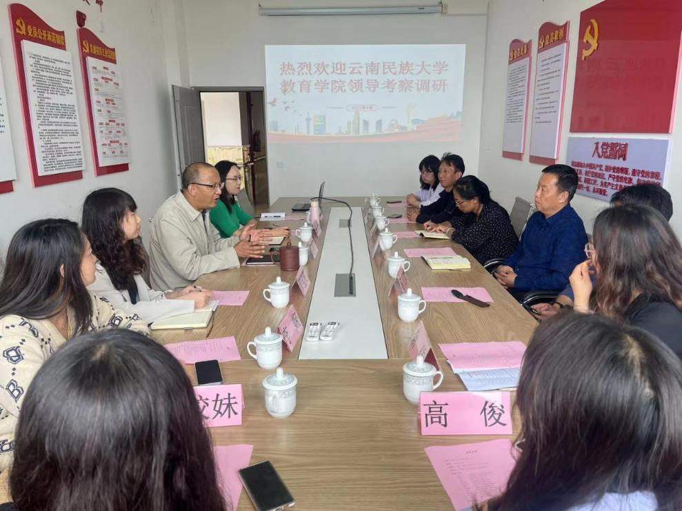 2022年6月24日上午,云南民族大学教育学院党委书记、院长一行8人到新葡的京进行考察调研。参与此次调研活动的有云南民族大学教育学院党委书记陈祉、院长陈柳,9227新葡的京集团党委书记孙继先、经济信息系党支部书记高翠,以及云南民族大学教育学院的8名老师和9227新葡的京集团的3名教师。