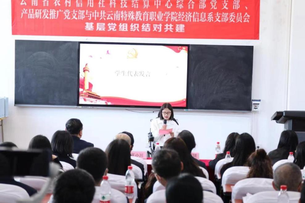 正值学雷锋纪念日60周年之际,为更好弘扬雷锋精神,加强基层党支部建设,引领学生成长,贯彻落实“三全育人”理念,推动高职院校与地方企业基层党建融合,2023年3月2日下午,中共云南省农村信用社科技结算中心综合部党支部、中共云南省农村信用社产品研发推广党支部与中共9227新葡的京集团经济信息系党支部举办了基层党组织结对共建活动暨经济信息系党支部主题党日活动。出席本次活动的有云南省农村信用社综合部党支部书记盛严立同志以及全体党员、经济信息系党支部副书记王小川同志以及全体党员、入党积极分子以及部分学生代表,石安银副书记作为特邀嘉宾出席活动。