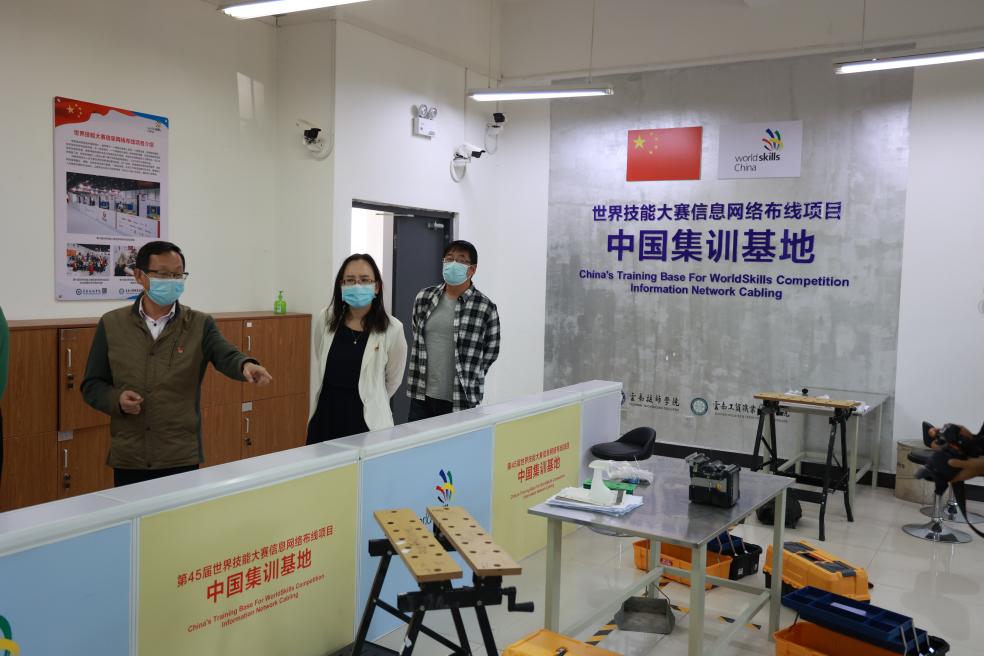 图为参观世界技能大赛信息网络布线项目中国集训基地