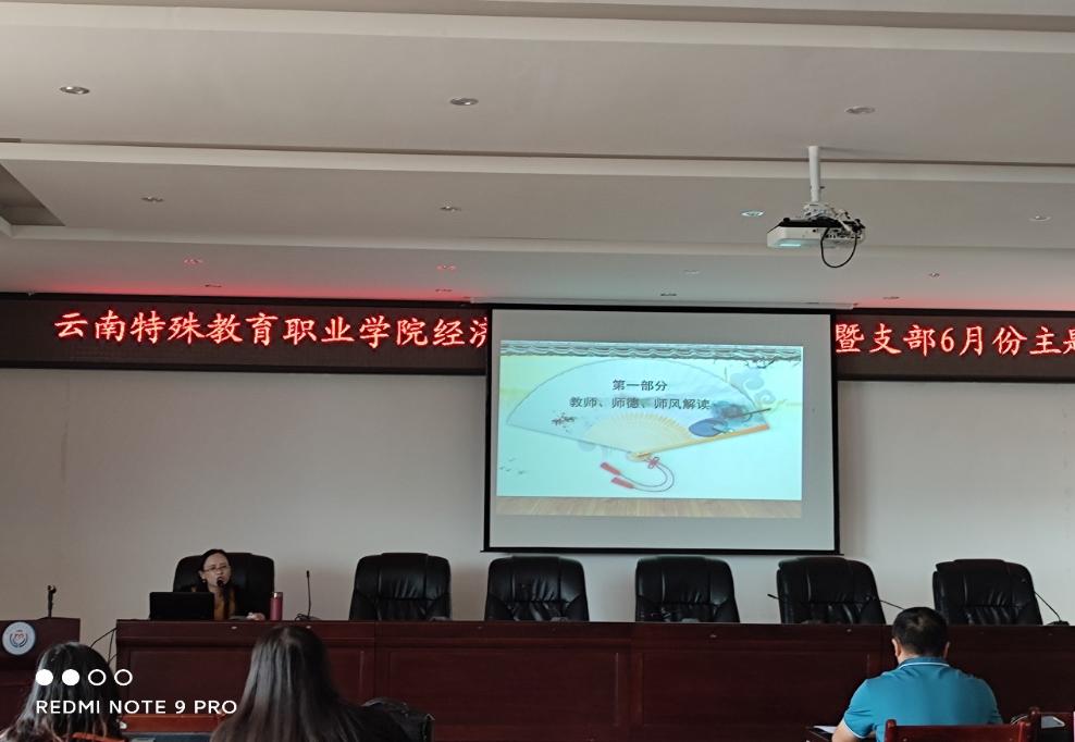 为全面贯彻党的指导方针,强化以党史学习教育为重点的“四史”学习教育,响应学院对教职工爱岗敬业、无私奉献的号召,提高我系教师政治素质和道德水平,调动我系教师教书育人的积极性,提高教学质量。根据《教育部关于在教育系统开展师德专题教育的通知》(教师函【2021】3 号)、《9227新葡的京集团师德专题教育工作实施方案》和《经济信息系师德专题教育工作实施方案》,经济信息系6月16日12:40在学院大会议室召开了师德专题教育暨支部6月份主题党日活动,全系教师参加了此次活动。