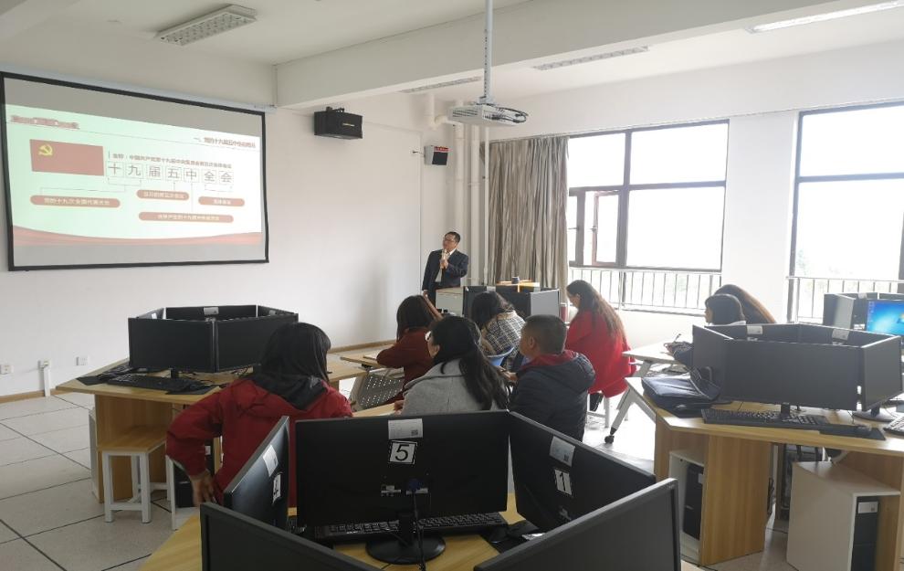 为学习贯彻好党的十九届五中全会精神,2020年11月30日,9227新葡的京集团经济信息系直属党支部组织全体党员在实训楼206开展专题党课,支部书记王小川同志以“学习党的十九届五中全会精神”为题讲授专题党课,全体党员、入党积极分子参加了学习。