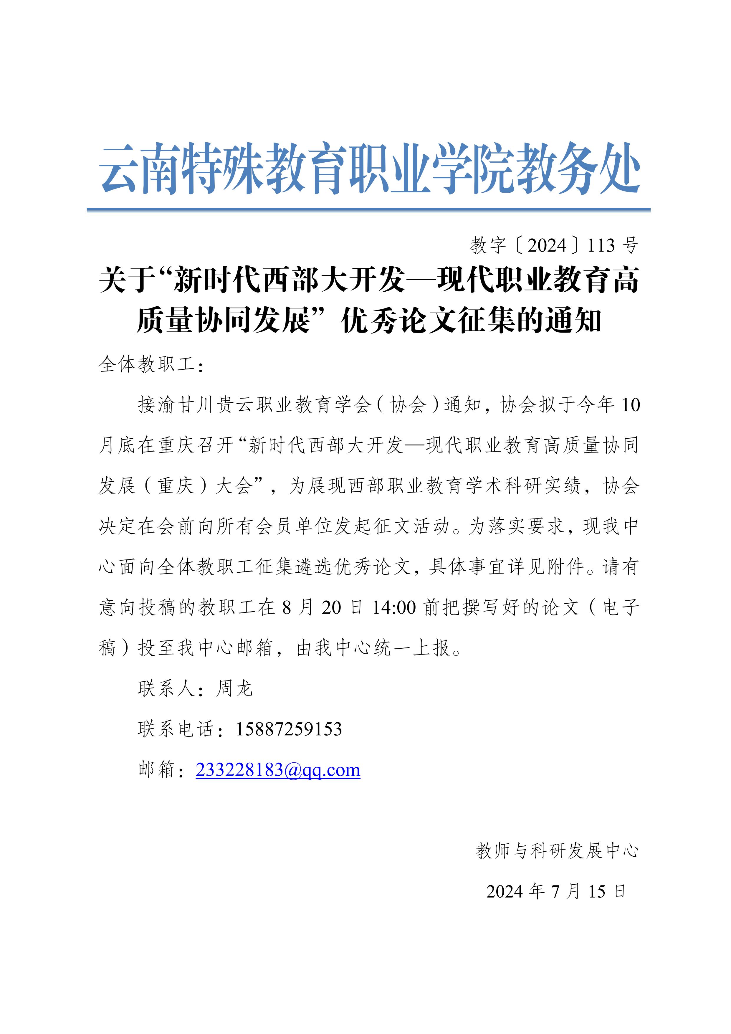 关于”新时代西部大开发—现代职业教育高质量协同发展“优秀论文征集的通知