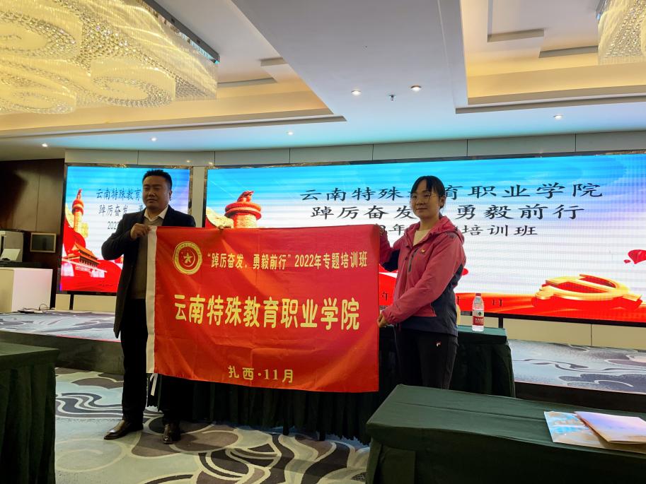 随后石安银副书记向本次培训班授班旗。授旗仪式上,当我们接过红旗的一刹那,深深感到红色基因在我们优秀年轻干部身上赓续。它象征着革命精神的传承,我们接过的不仅仅是一面红旗,更多的是一种担当和使命。