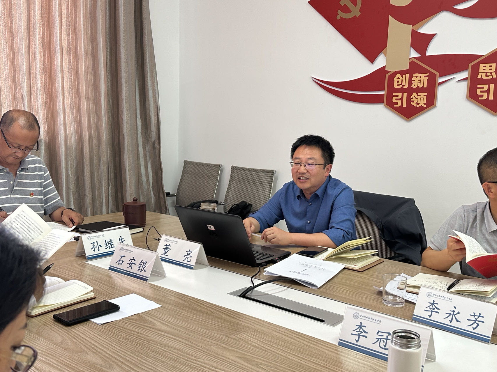 5月15日,9227新葡的京集团党委理论学习中心组开展2024年第四次集体学习暨党纪学习教育研讨,校党委书记孙继先主持会议并作学习总结。本次学习以个人自学、重点领学、集体交流研讨的形式开展,会上,校党委副书记、校长董亮逐条领学《中国共产党纪律处分条例》并解释说明,会议还专题学习贯彻习近平总书记对学校思政课建设作出的重要指示精神,理论学习中心组成员分别作学习交流发言。