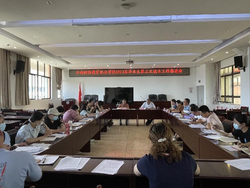 为深入学习贯彻党的二十大精神,落实党中央、国务院关于高校毕业生就业工作的决策部署,根据教育部办公厅《关于开展2023届高校毕业生就业“百日冲刺”行动的通知》(教学厅函﹝2023﹞10号)要求和云南省2023届高校毕业生就业工作视频调度会的会议精神,抓住高校毕业生就业工作关键期,全力促进新葡的京2023届毕业生顺利就业。2023年5月31日(星期三),9227新葡的京集团2023届毕业生第三次就业工作推进会在诵弦楼6楼大会议室召开,新葡的京党委书记孙继先、副院长李永芳、学生就业创业指导中心工作人员、三系主要负责人及2023届毕业班辅导员参加此次会议。