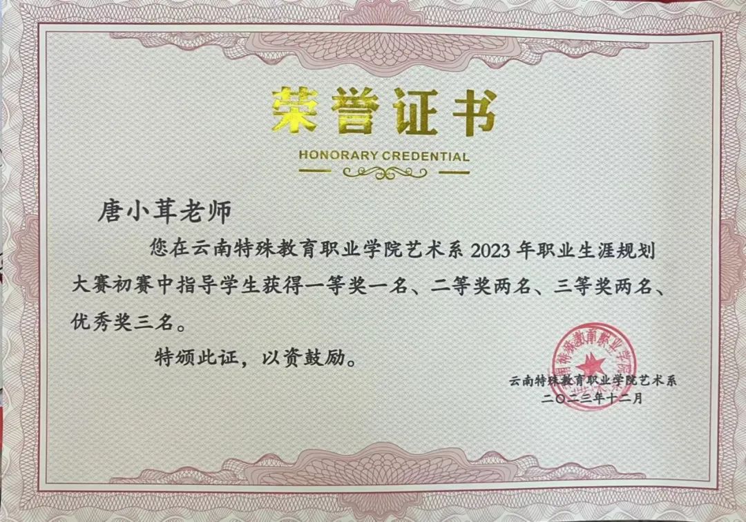 在云南省首次高职院校专业综合评价工作中,唐老师精心筹备材料,严谨应对自评、互评与专家组评价,凭借专业材料的充分性与齐全性获得教育厅评估院认可,担任专业评价召集人,统筹全省美容美体艺术专业互评与汇报工作,彰显卓越的专业素养与组织能力,在教育领域树立了光辉典范。
