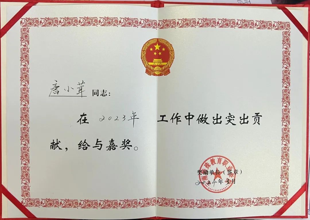 自从业以来,唐老师一直致力于教学、班主任及辅导员工作,勤勉尽责,成绩斐然,先后荣获优秀党员、优秀教师、优秀班主任等荣誉称号。