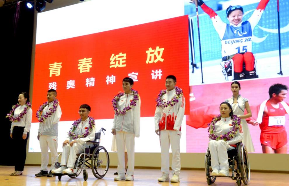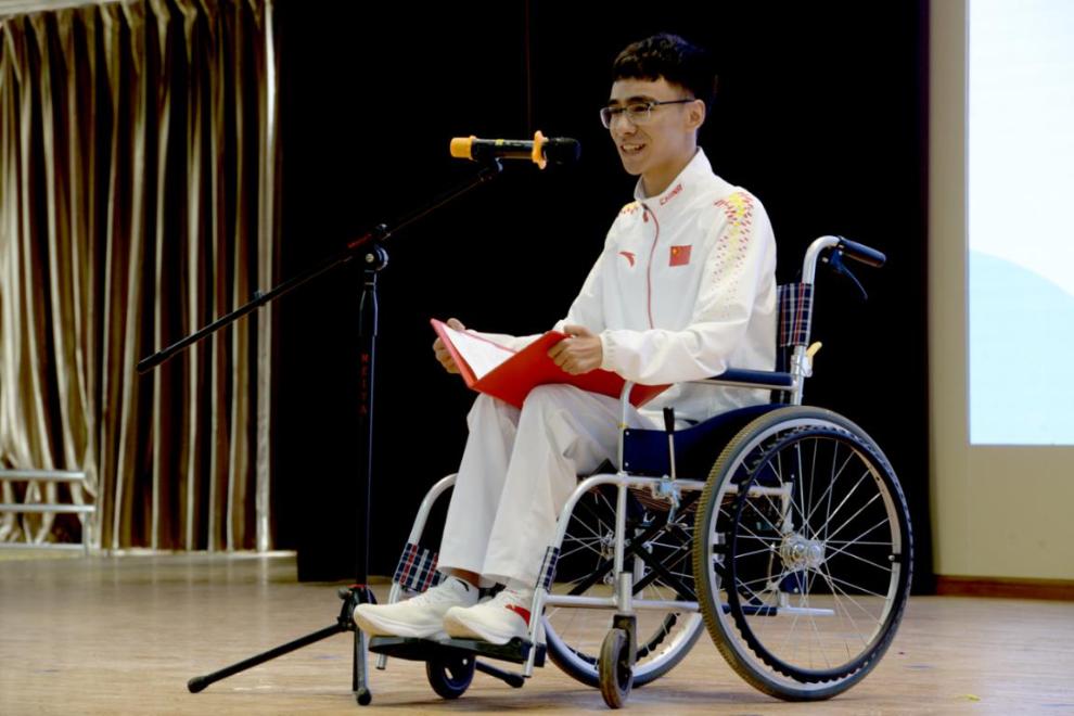 宣讲团成员逐一宣讲,他们从不同侧面、不同切口,深情讲述自己与残奥会、自己与体育运动的故事,全方位立体式地展示了克服困难、顽强拼搏、为国争光的精神风貌,以实际行动诠释了奥运精神,宣传了云南运动员迎难而上、追求卓越、共创未来的宝贵精神,赢得了在场师生的阵阵掌声。他们包含激情的宣讲、自强不息的精神激励着现场的青年学生坚定信念、奋力奔跑、勇攀高峰,鼓舞着现场的残疾学生迎难而上、努力奋斗、实现梦想。