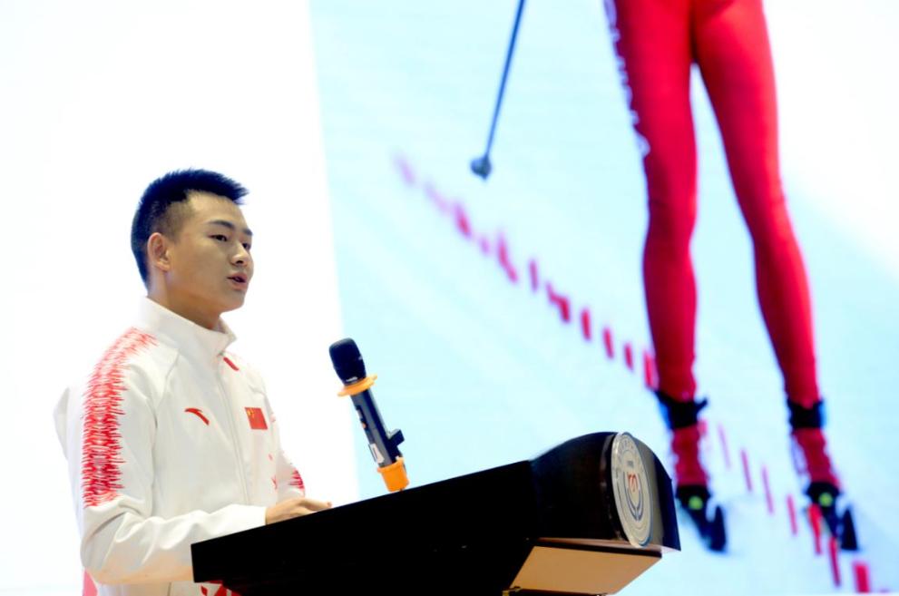 云南省残疾人联合会党组书记、理事长赵正富宣布“残奥精神进校园”宣讲活动启动。学院党委副书记、院长董亮代表学院为冬残奥会“三金冠军”杨洪琼授予了“杰出校友”荣誉称号。