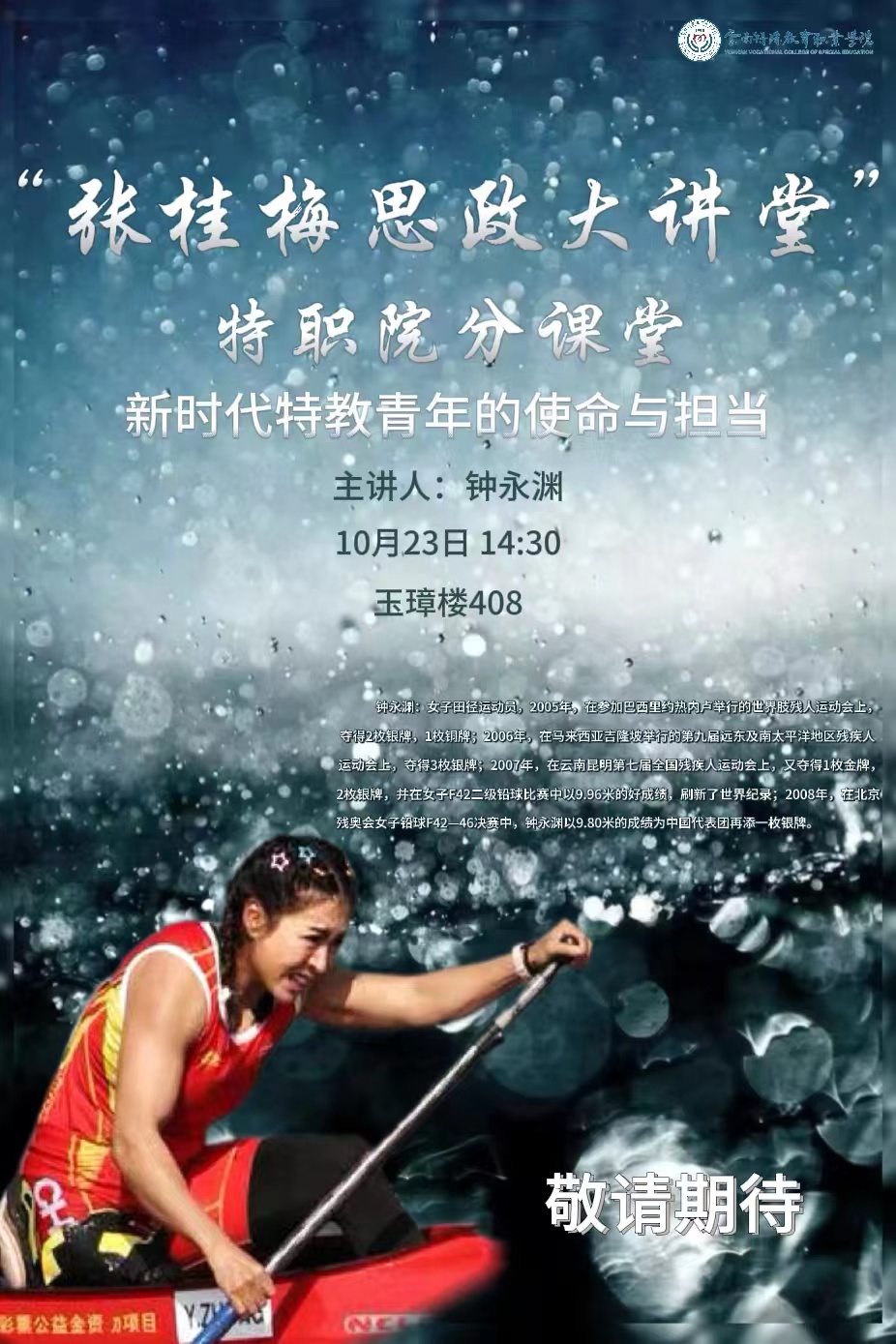 【敬请期待】“张桂梅思政大讲堂”特职院分课堂——“新时代特教青年的使命与担当”