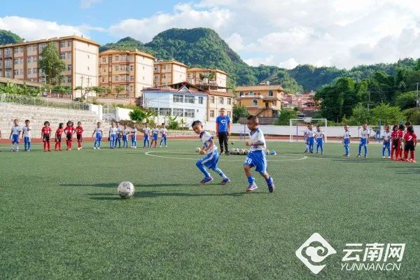 沧源县启动实施少年足球示范学校项目,图为第一个足球班——勐董完小的学生们在接受专业训练