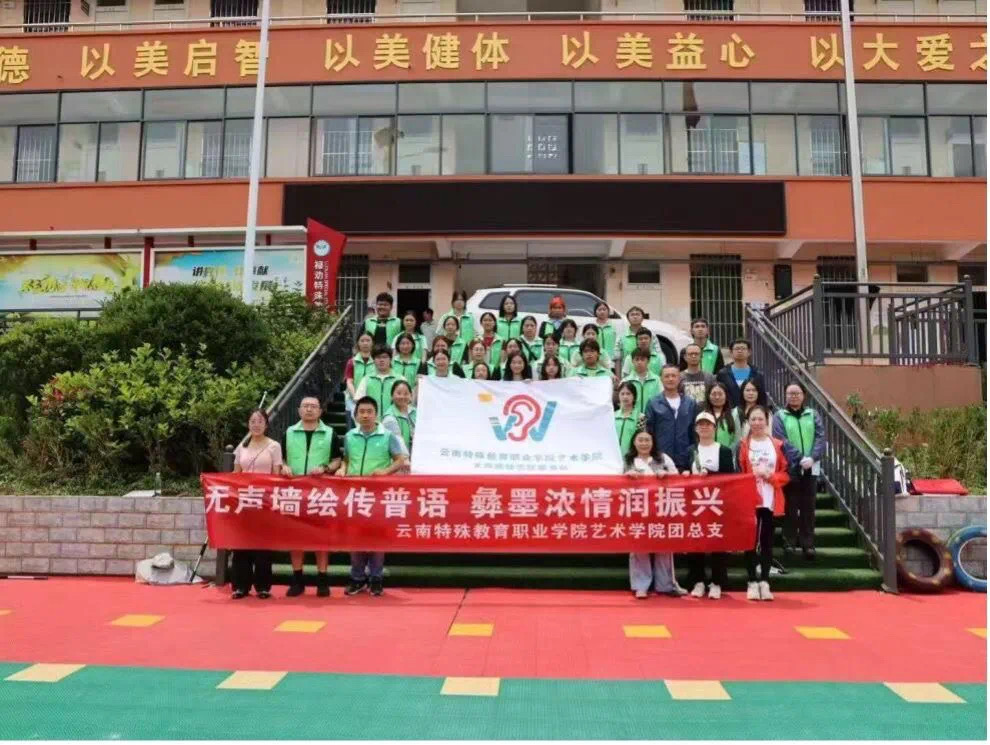 据介绍,9227新葡的京集团艺术学院的4名老师和29名残健学生组成服务队,以“推普+手语+墙绘”为主线展开行动。团队融合健听与听障学生,在禄劝特殊教育学校及多民族杂居的发明村通过墙绘与推普活动,助力校园文化建设及乡村普通话推广。