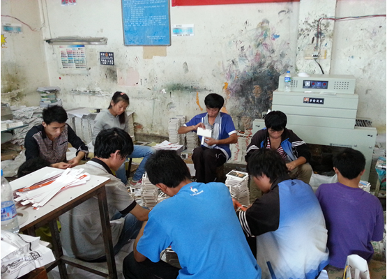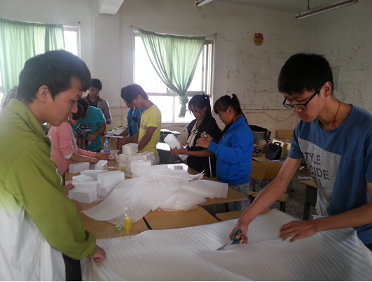 在一个月的试运行期间,共开展了4个班级、累计约90人次的劳动实践活动。课程的内容主要包含:教师办公室的常规卫生维护、实训基地外围卫生维护、学校各部门临时交办的搬运和杂务工作,并且核心开展了与淘宝旗下各物流公司、广印通印务有限公司的物流包装工艺、印刷制品后期加工生产实践活动。一个多月下来,学生累计打包物流产品和加工印刷制品超过10000余件,工作态度认真受到了合作单位的好评。尤其是11美术设计(2)班的同学,工作十分认真,任劳任怨,在整个实训课程中,其劳动强度和工作效果在4个班级中是最佳的。