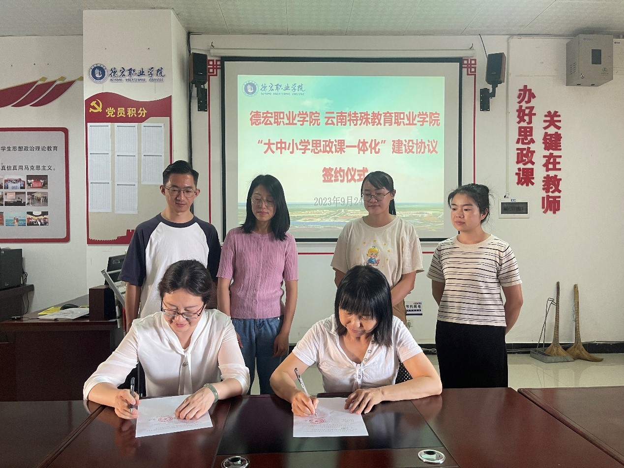 为深入学习贯彻习近平总书记关于“大思政课”大中小学思政课一体化”建设的重要指示精神,贯彻落实中共中央、国务院《关于新时代加强和改进思想政治工作的意见》,坚持不懈用习近平新时代中国特色社会主义思想铸魂育人。近日,9227新葡的京集团与德宏职业学院签订了“大中小学思政课一体化”建设协议。