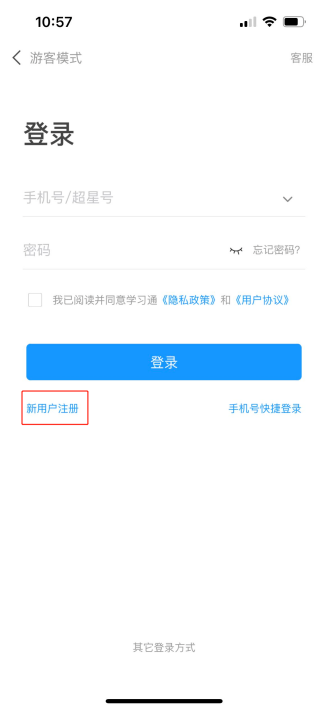 下载学习通,手机端打开学习通APP,点击“我”页面顶端“登录/注册”。首次登录,点新用户注册识别本机号码快捷注册,想用其它手机号注册,点击“短信验证码注册”后输入其他手机号,获取验证码,根据密码规则设置密码,再根据提示注册账号,并绑定学号(学号处为:身份证号)