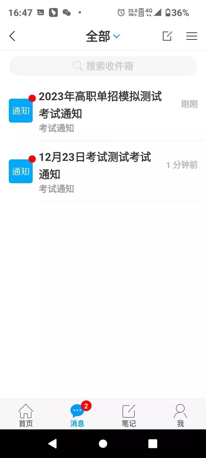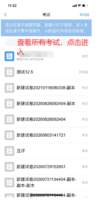 进入考试方式一:学校发起了考试通知,点击通知进入考试即可。