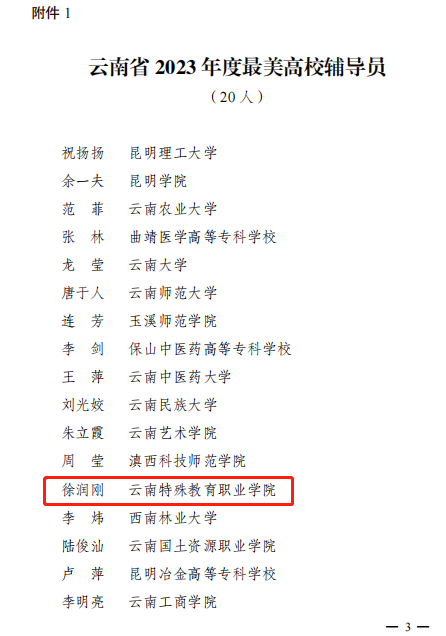 近日,中共云南省委宣传部 云南省教育厅发布了《关于公布云南省2023年度最美高校辅导员和最美高校班主任推选结果的通知》,9227新葡的京集团艺术系听障教师徐润刚获云南省2023年度“最美高校辅导员”荣誉称号。