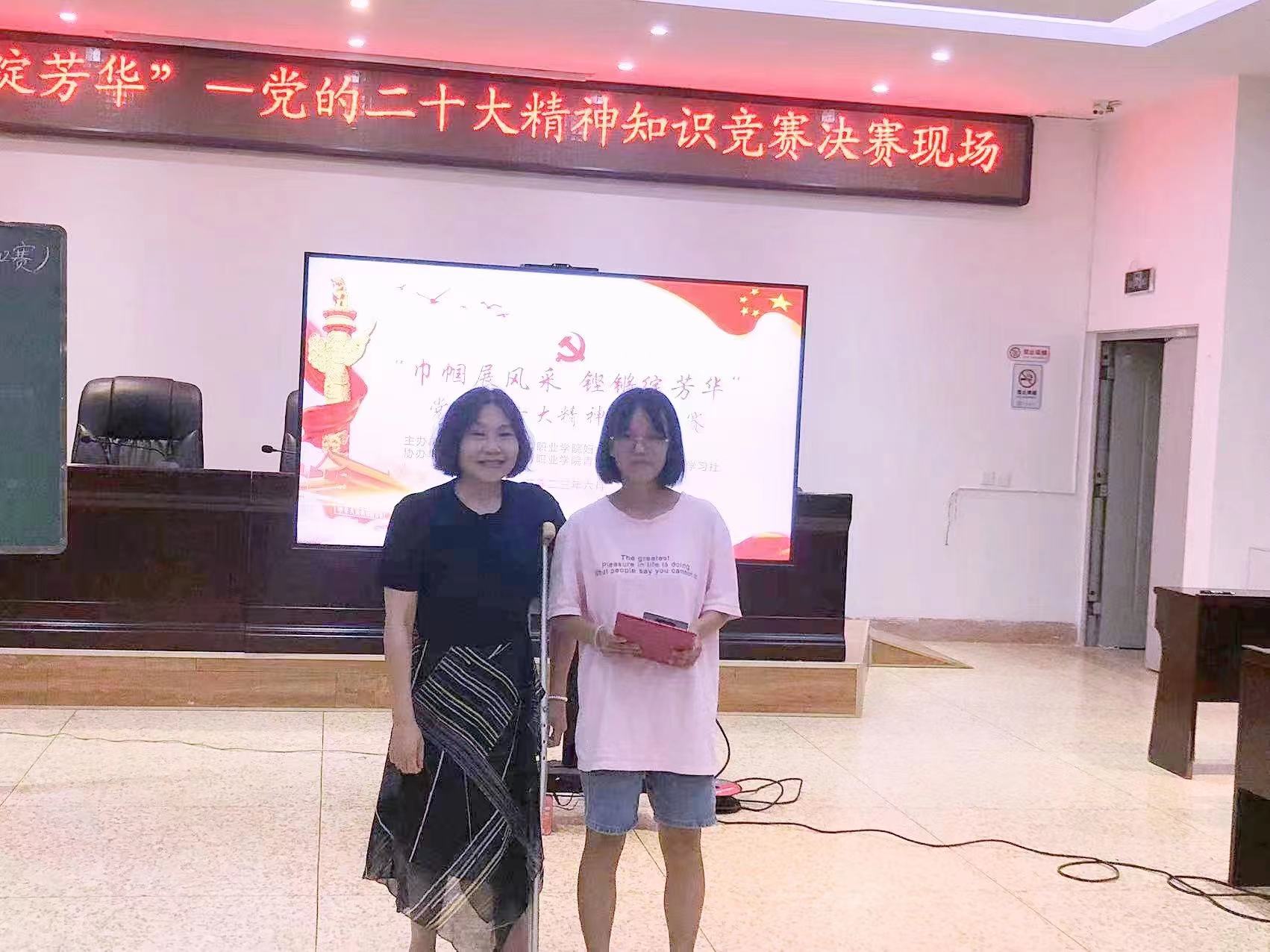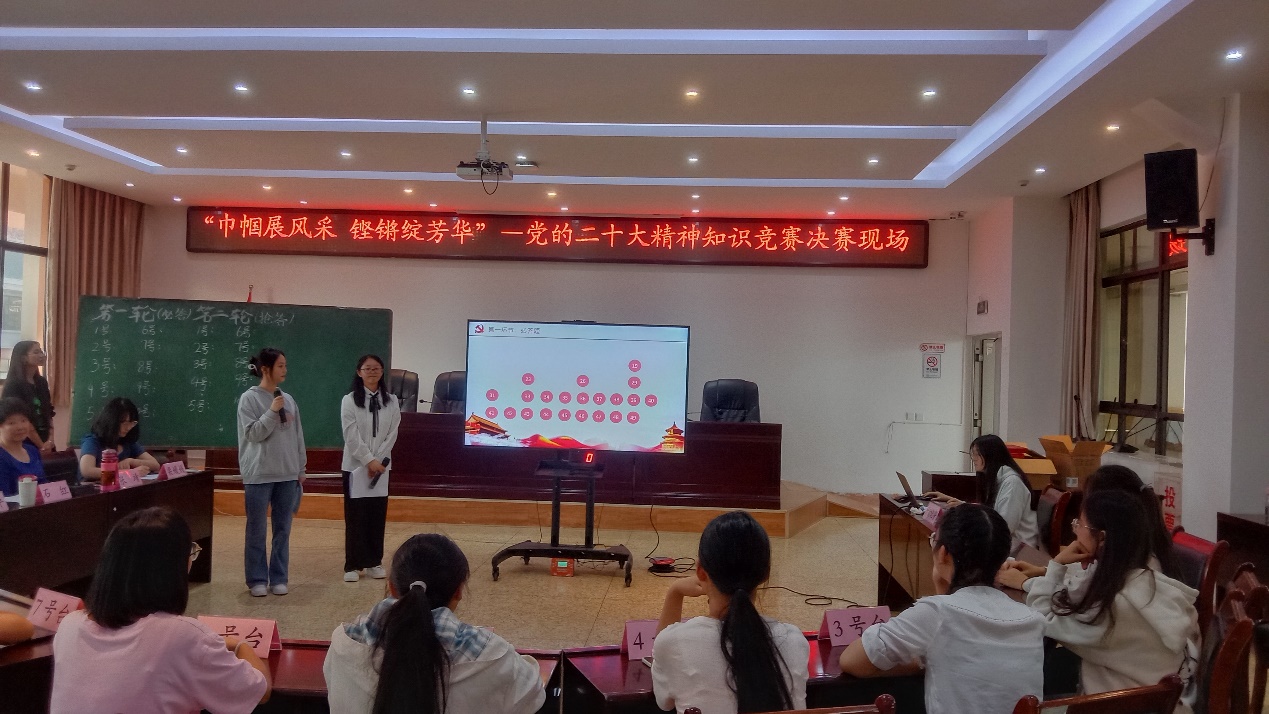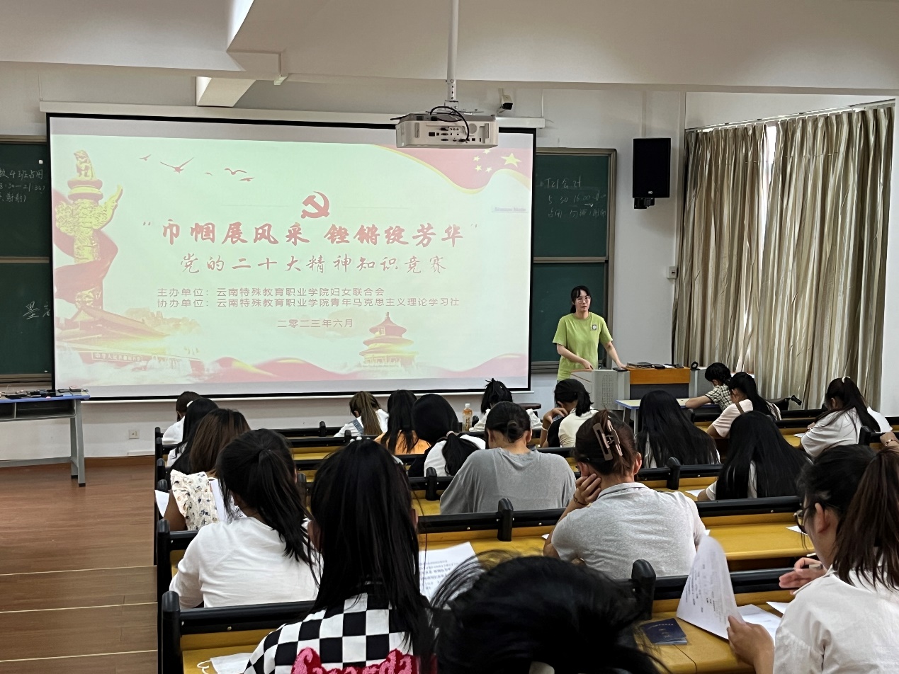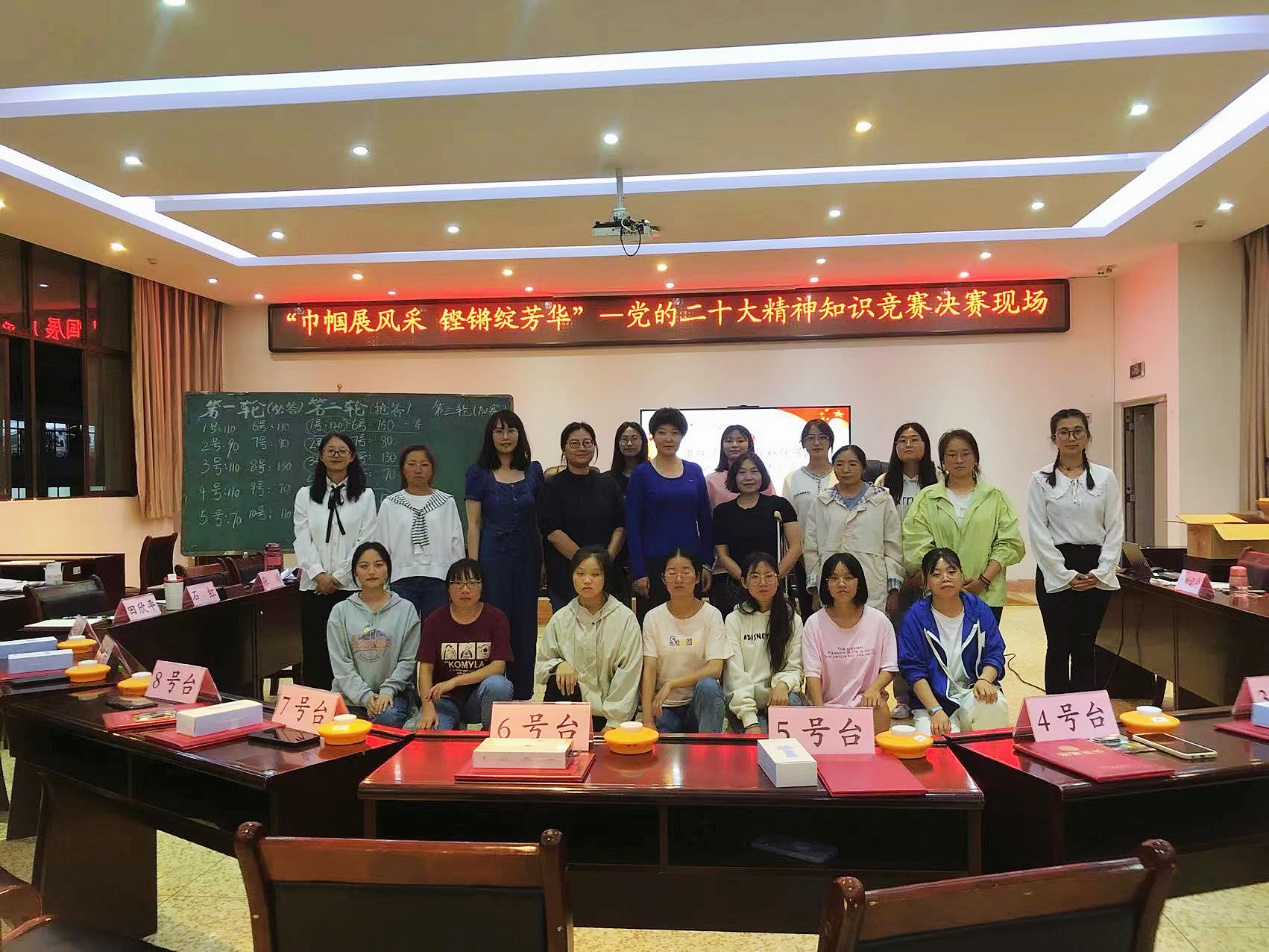 最后,石红主席对本次活动作总结讲话。她对本次知识竞赛的成功举办表示认可,对同学们的精彩表现予以点赞,开展知识竞赛有助于培养特职院女学生红心向党的精神品质,鼓励大家要深入学习贯彻党的二十大精神,不断提高理论素养,提升思想境界,促进知识与实践相结合,为实现中华民族伟大复兴贡献自己的青春力量,让青春在全面建设社会主义现代化国家的火热实践中绽放绚丽之花。