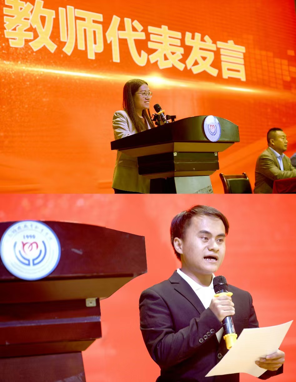 教师代表张敏在发言中分享了自己的教学经验和人生感悟,鼓励同学们树立远大的理想和目标,保持积极向上的心态,勇敢面对困难和挑战,爱护每一位同学,为同学们的成长和发展提供优质的教育和指导。