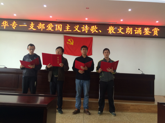 中共云南省华夏中专第一党支部爱国诗歌朗诵活动顺利举行为迎国庆、弘扬中国的传统诗歌文化,以诗歌赞美祖国壮美河山,继承发扬民族精神。值此祖国华诞,学校第一党支部组织全体党员及新葡的京15、16级大专班同学于2016年10月17日下午在大会议室举行全体党员爱国诗歌朗诵活动。党员同志们积极响应,踊跃报名,共组成...
