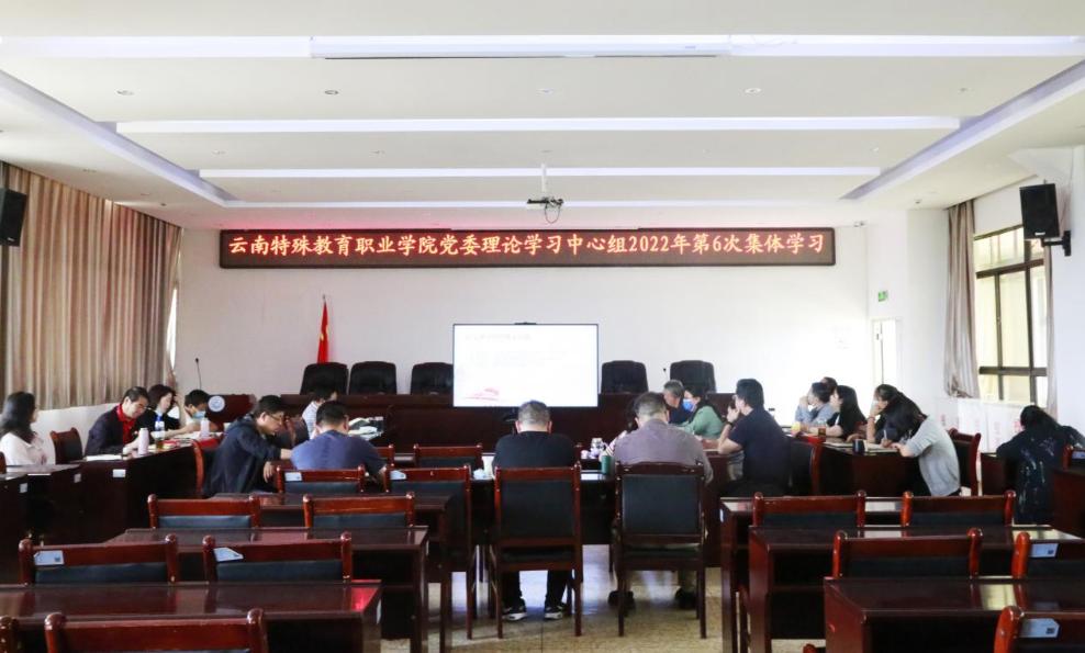 6月7日下午,学院党委理论学习中心组在诵弦楼614室举行2022年第六次集体学习。学习主题是习近平新时代中国特色社会主义思想、《中华人民共和国职业教育法》、《云南省“十四五”残疾人保障和发展规划》、《云南省“十四五”高等教育事业发展规划》、《云南省“十四五”职业教育发展规划》、《云南省“十四五”特殊教育发展提升行动方案》、《信访工作条例》等。学院党委副书记、院长董亮领学,全体中心组成员参加学习。