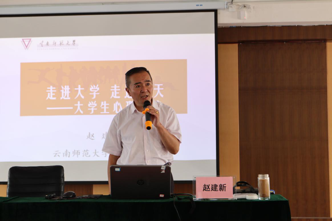 为进一步加强新葡的京学生管理工作和心理健康教育工作,普及心理健康知识,引导大学生保持积极健康的心理状态,更好更快更顺利地适应大学的学习生活,9月13日邀请了云南师范大学赵建新教授到新葡的京安宁校区为新生作“走进大学 走进春天 大学生心理调适”的专题讲座。