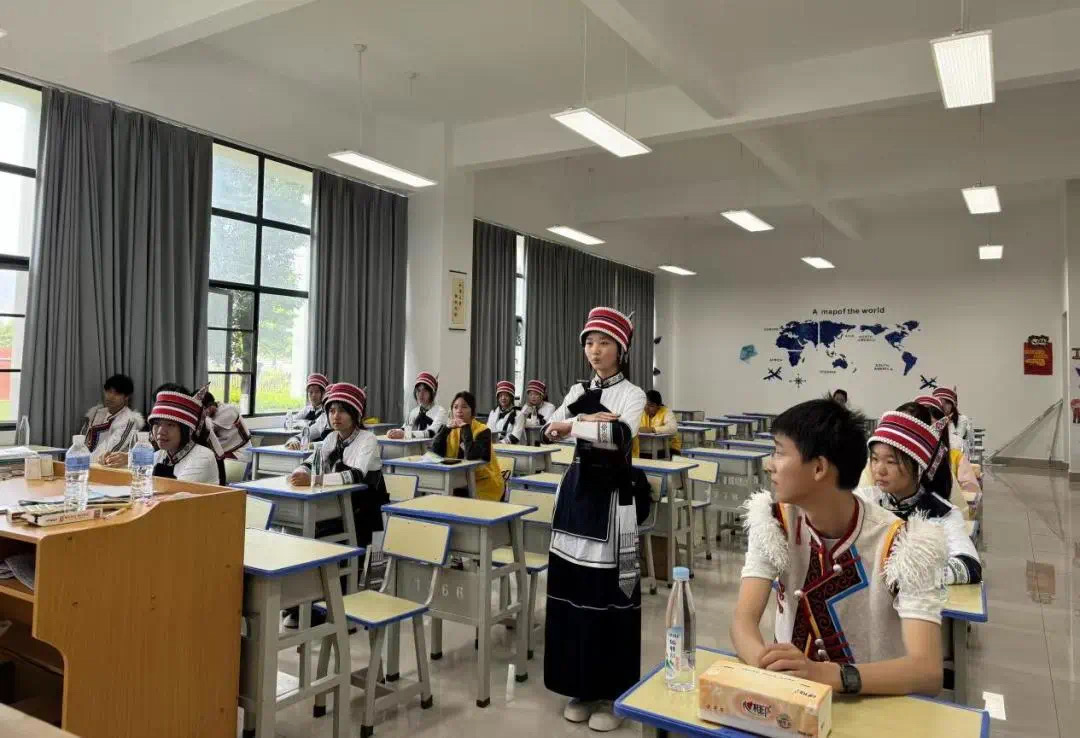 活动最后一日,实践团走进石林民族职业高级中学,开展语言文化赋能行动。国歌手语教学传递家国情怀,经典诵读写活动弘扬传统文化,日常手语教学则搭建起沟通新桥梁。一系列语言实践,既推动了普通话与手语技能的普及,也为校园文化建设注入新活力。