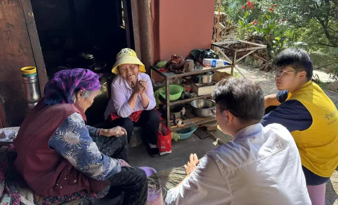 7月5日清晨,师生们满怀热忱,直奔石林五棵树村,开展“推普+助老”活动。他们耐心地教村民普通话基础用语,从日常问候到旅游服务常用语,逐字逐句纠正发音。同时,开展金融防诈宣讲、发放推普宣传册与反诈手册,在助力语言沟通升级的同时,守护村民财产安全。最后,学生们还调研了村庄历史发展、走访民族团结示范区,亲身感受乡村振兴中民族融合的生动图景。