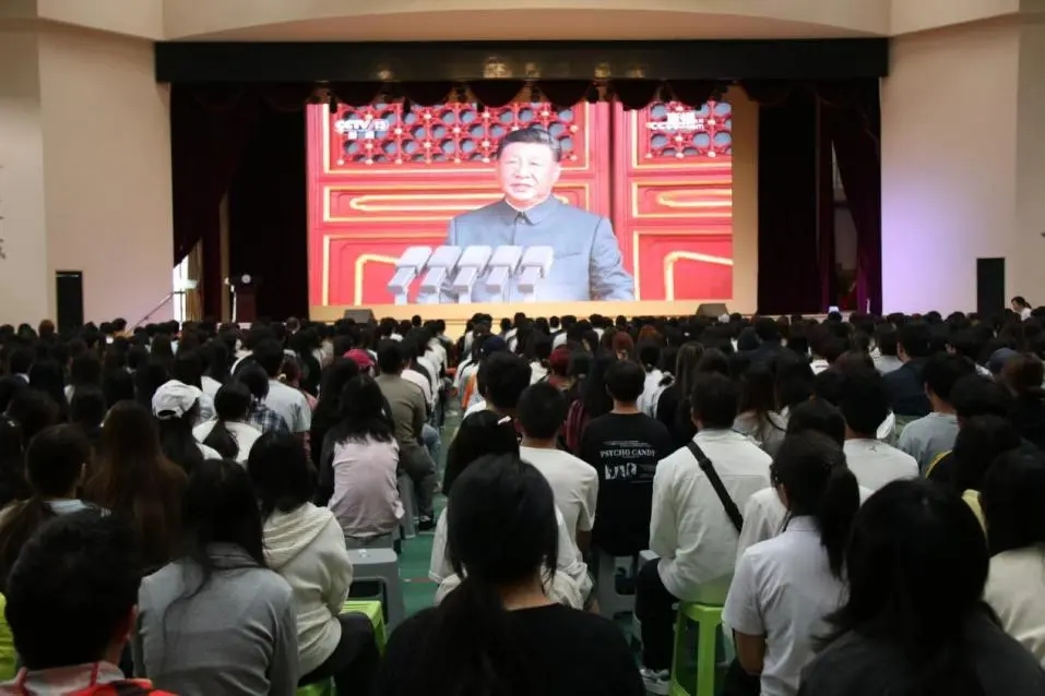 观看阅兵现场 当天上午9时,呈贡校区礼堂内,全体师生集体观看了纪念中国人民抗日战争暨世界反法西斯战争胜利80周年阅兵式。通过观看阅兵式,新生们接受了爱国主义教育,深刻理解了和平的来之不易,激发了他们的民族自豪感和历史责任感,为即将开启的大学生活注入了奋斗的正能量,也奠定了他们作为新时代青年的家国情怀和社会使命感。 学校党委书记杨波、党委副书记,校长石安银、多位校领导及二级学院党政领导、各职能部门负责人、新生辅导员出席典礼。 开学典礼在庄严的国歌声中启幕。校长石安银致辞,对新生的到来表示热烈欢迎,并激励他们在新的人生起点上勇敢拼搏,追求卓越。他以“师长”的身份,亲切地给予同学们宝贵建议,指导他们如何度过充实而有益的三年学习时光。他比喻学习应如钉钉子,一锤接着一锤地敲,坚持不懈,方能见成效;生活如同搭积木,一块接着一块地搭建,每一步都应稳健而有序;成长应如向日葵,心怀温暖,向着阳光不断前行。 校长石安银致辞 教师代表和新生代表先后发言,分享了教学与学习的心得以及对未来的展望。老生为新生代表佩戴校徽环节,更是传递了学校的文化传承与精神延续。 开学典礼结束后,学校党委书记杨波同志以“答时代之问,筑强国之基”为主题,为新生们带来了开学第一课。杨波书记号召广大青年学子将个人发展与国家命运紧密相连。他强调,实现中国式现代化亟需大批高素质技能人才,职业教育正成为成长成才的重要通道,对于特殊教育学生而言,更应秉持自强不息的精神,以精湛的技能为国家建设贡献力量。 党委书记杨波开学第一课 紧接着,校长石安银则以“坚定理想信念,做优秀特教人”为题,为新生们上了一堂生动的理想信念教育课。他结合学校的办学理念和特教行业的发展前景,激励新生们树立远大理想,坚定信念,努力成为优秀的特殊教育人才。 此次入学教育活动将持续至9月6日,涵盖心理健康教育、学业发展指导、校园安全教育等多个专题,旨在帮助新生全面适应大学生活,为他们的成长成才奠定坚实基础。