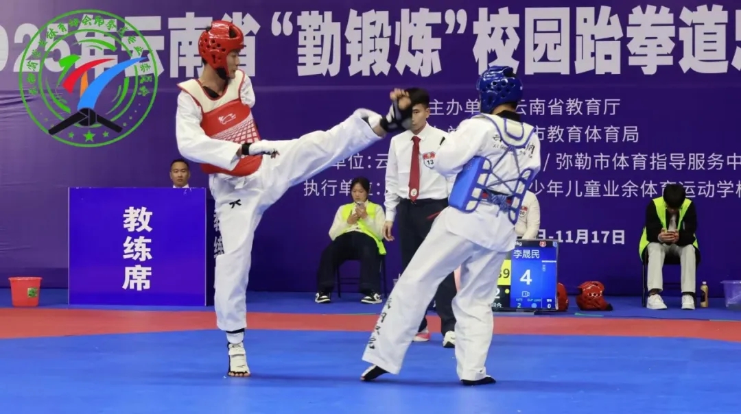 由云南省教育厅主办,弥勒市教育体育局承办的2025云南省“勤锻炼”校园跆拳道总决赛(大学组)于11月17日在弥勒市体育馆闭幕。本次比赛有来自云南省各州、市的25所高校近300人参赛;9227新葡的京集团由李辉、丁征顺老师带领10名学生参加了此次比赛。