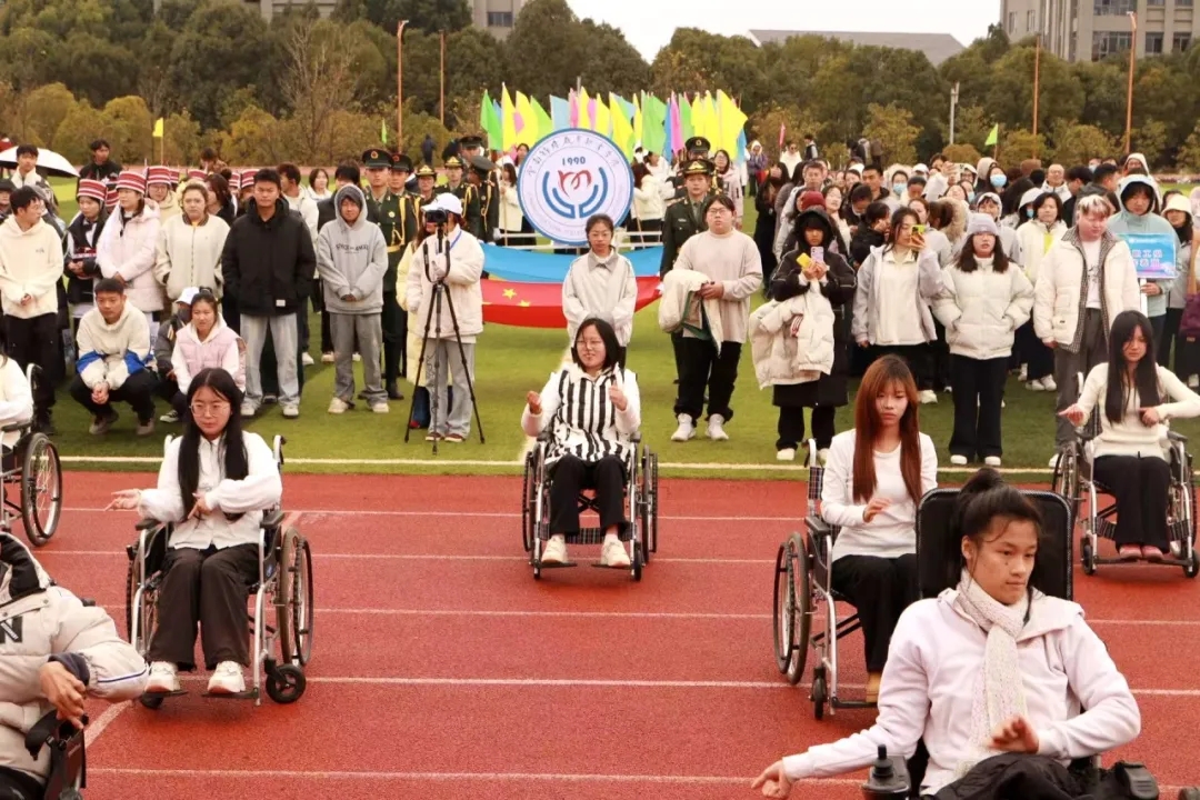 电子商务代表方阵,以键盘上的敏捷,换轮椅上的坚韧。素白衣衫裹着协作热忱,要把屏幕里的精准,化作赛道上的勇气,让轮椅轨迹成青春最亮的光。
