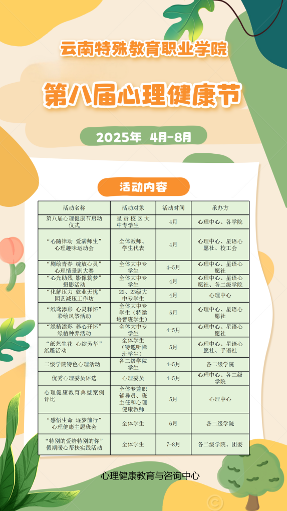 近日,新葡的京学生处(心理健康教育与咨询中心)在全校范围内开展了第八届心理健康节系列活动。据心理中心介绍,本次活动是落实新葡的京党委对心理健康工作专项任务的重要举措。新葡的京党委对心理健康教育高度重视,专题研究学校心理健康教育工作,对当前心理健康教育工作中的问题和难点进行了深入探讨,并提出了一系列解决思路和保障...