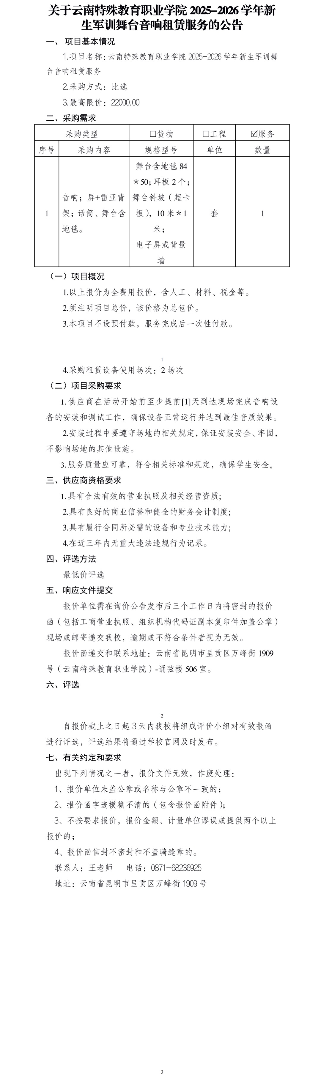 关于9227新葡的京集团2025-2026学年新生军训舞台音响租赁服务的公告