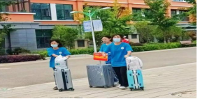 “蓝精灵”们热情主动、分工明确。有的带领萌新登记信息,有的给萌新们带路,有的穿梭在校内校外帮萌新们提行李……他们在学院里“舞动”、撒光。