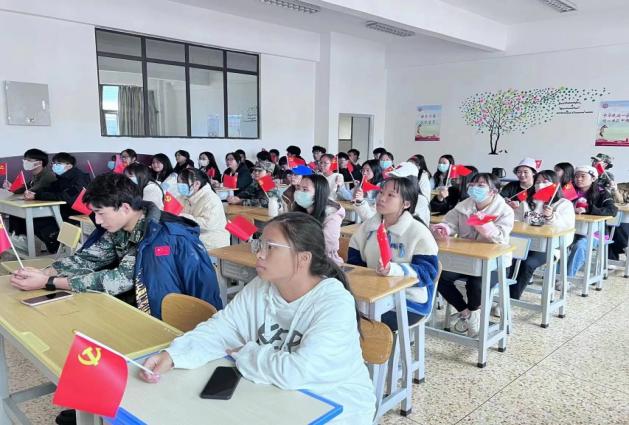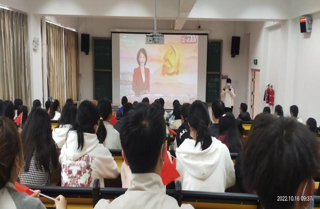 升旗仪式结束后,全体师生进入分会场准备观看中国共产党第二十次全国代表大会。10点会议正式开始,习近平总书记在大会上指出:“十八大以来,我们经历了对党和人民事业具有重大现实意义和深远历史意义的三件大事:一是迎来中国共产党成立一百周年,二是中国特色社会主义进入新时代,三是完成脱贫攻坚、全面建成小康社会的历史任务,实现第一个百年奋斗目标。这是中国共产党和中国人民团结奋斗赢得的历史性胜利,是彪炳中华民族发展史册的历史性胜利,也是对世界具有深远影响的历史性胜利!“