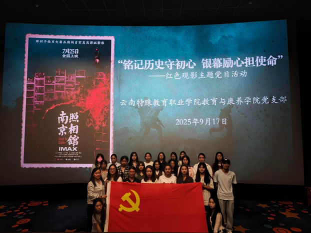 2025年9月17日,在中国人民抗日战争暨世界反法西斯战争胜利80周年纪念日、九一八事变纪念日临近之际,教育与康养学院党支部精心组织开展了以“铭记历史守初心・银幕励心担使命————《南京照相馆》红色影片观影”为主题的党日活动,32名党员与入党积极分子踊跃参与。