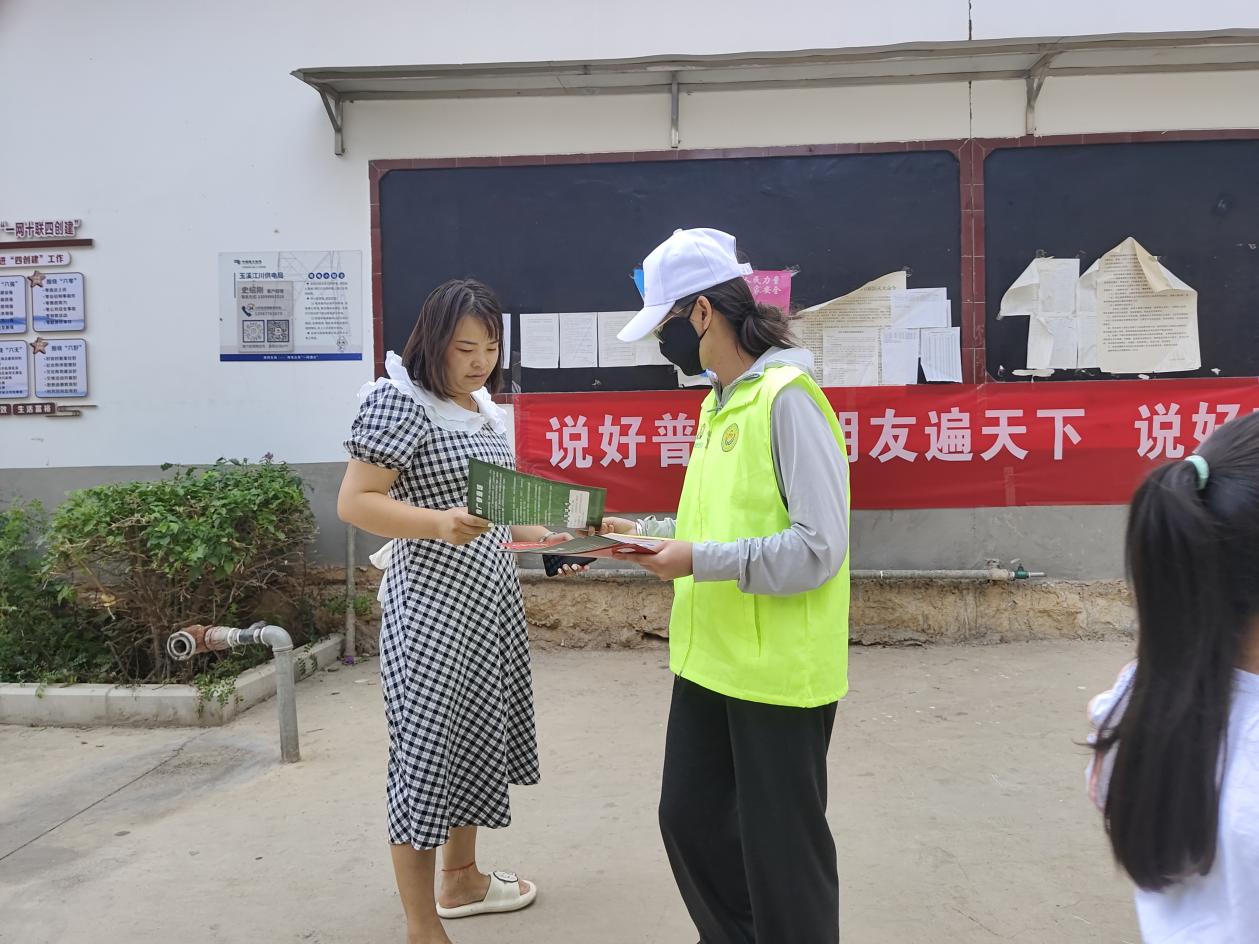 7月8日上午,实践团成员在三街社区开展推普实情调查,通过发放普通话宣传册、反诈宣传册、调查问卷等形式,对当地群众开展调研,了解当地国家通用语言文字普及程度和质量情况,重点人群国家通用语言文字使用状况、学习状况和学习需求等。同时,在三街社区文明实践站等基层一线场所,开展扶弱助残、敬老爱老、生态环保等志愿服务项目活动。通过同学们的活动,使当地群众和同学们深刻认识到,汉语言文字的统一性和规范性对个人、社会和国家的重要性,广大村民表示要认真学习普通话、主动使用普通话、推广普通话,为当地旅游业发展、经济社会进步和各民族共同繁荣奠定基础。